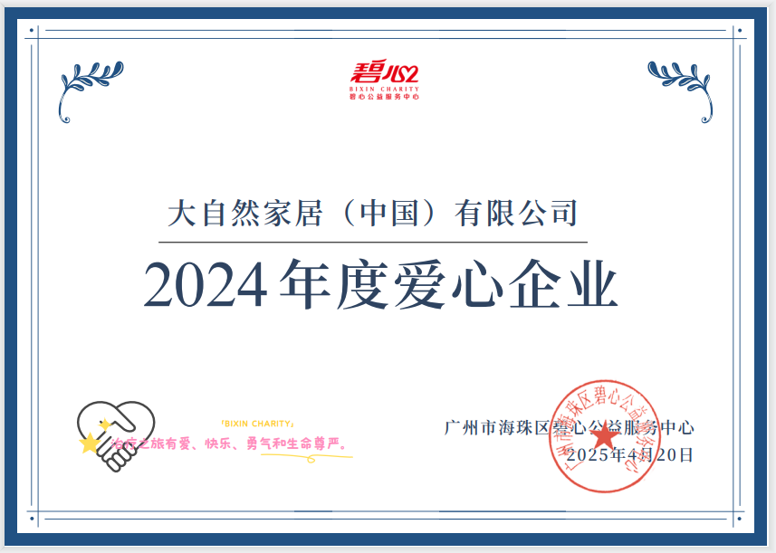 大自然家居堅持“擔環(huán)保責任、普健康生活、做健康家居”的企業使命。2006年,大自然推出“中國綠色版圖工程”,至今每年堅持公益植樹,向中國綠化基金會累計捐資2000萬元,先后在國內外組織“我為黃河種棵樹”、“我為呼吸種棵樹”、“我為孩子種棵樹”、“我為藍天種棵樹”等公益植樹活動,在國內外22個地區已種植30片生態(tài)林,植樹超100萬棵。